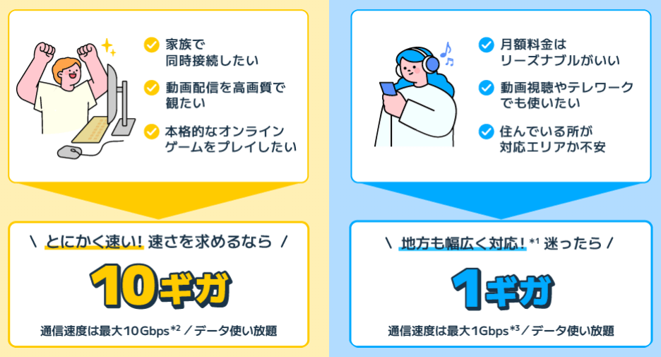 何より10ギガプランの方が月額料金が2,000円~3,000円は高いです